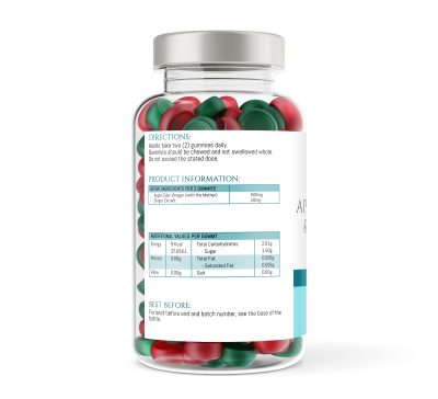 Each 2-gummy serving contains 500mg of apple cider vinegar combined with 10mg of ginger extract.
