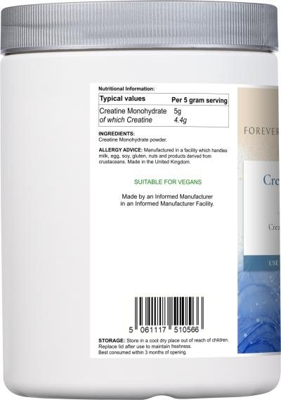 A total of 5g Creatine Monohydrate per serving (of which Creatine 4.4g).