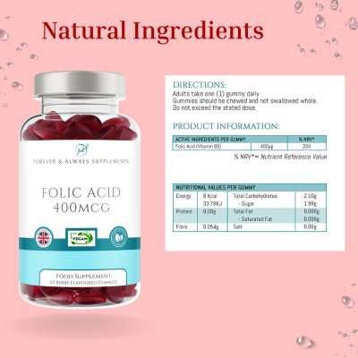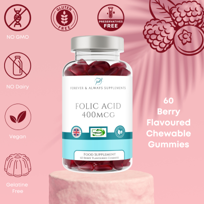Folic Acid 400μg – 60 Natural Berry Flavour Gummies