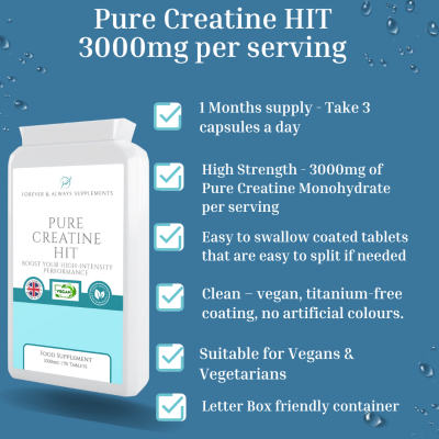 Pure Creatine HIT – Creatine Monohydrate 3000mg Per Serving – 90 Tablets