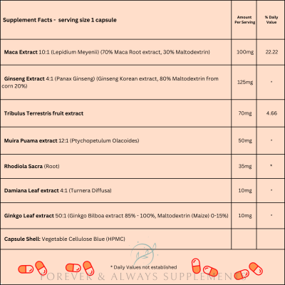 - Â Endurance, Stamina, Libido & Sex Drive Support.