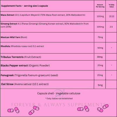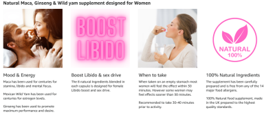 A specialist combination of maca root, Ginseng and additional herbs, designed to support female sexual health, Libido & Sex Drive. Â The unique blend of premium quality and natural ingredients can aid and help you get your sex drive, stamina and drive back to where it should be or elevate it to the next level.